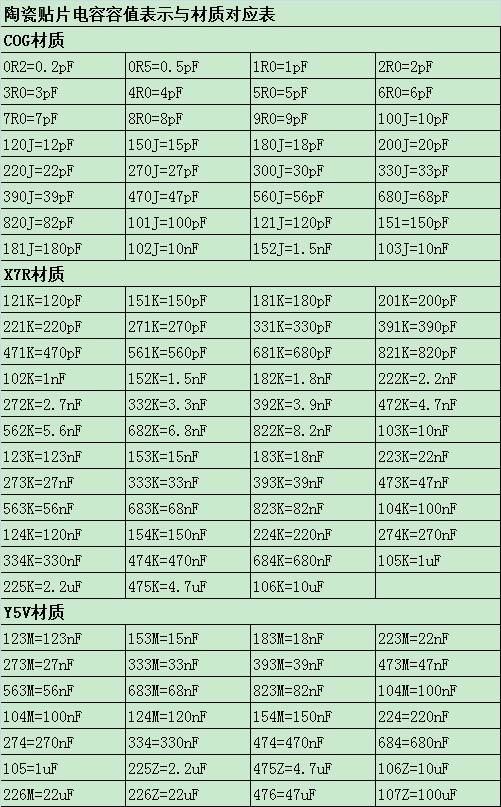 常用的貼片電容規(guī)格對照表
